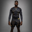 It is designed to provide protection from rashes, burns and scrapes, while delivering total freedom of movement during striking and groundwork. The “second skin” compressive effect of the fabric provides support during intensive training and can aid in muscular recovery.