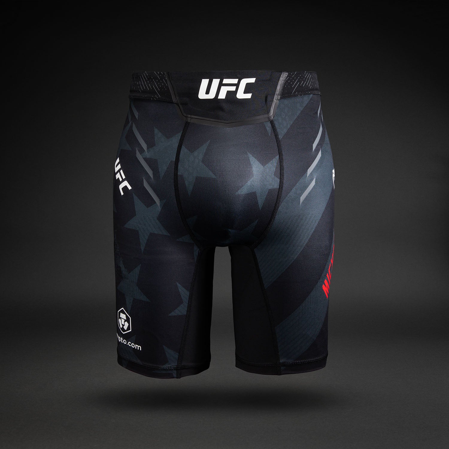 This authentic fight short is the exact model worn by Michael Chandler, made with flexible yet compressive fabric for freedom of movement and support. In designing this, Michael “Iron” Chandler chose to represent his national pride with a blacked-out Stars and Stripes graphic.