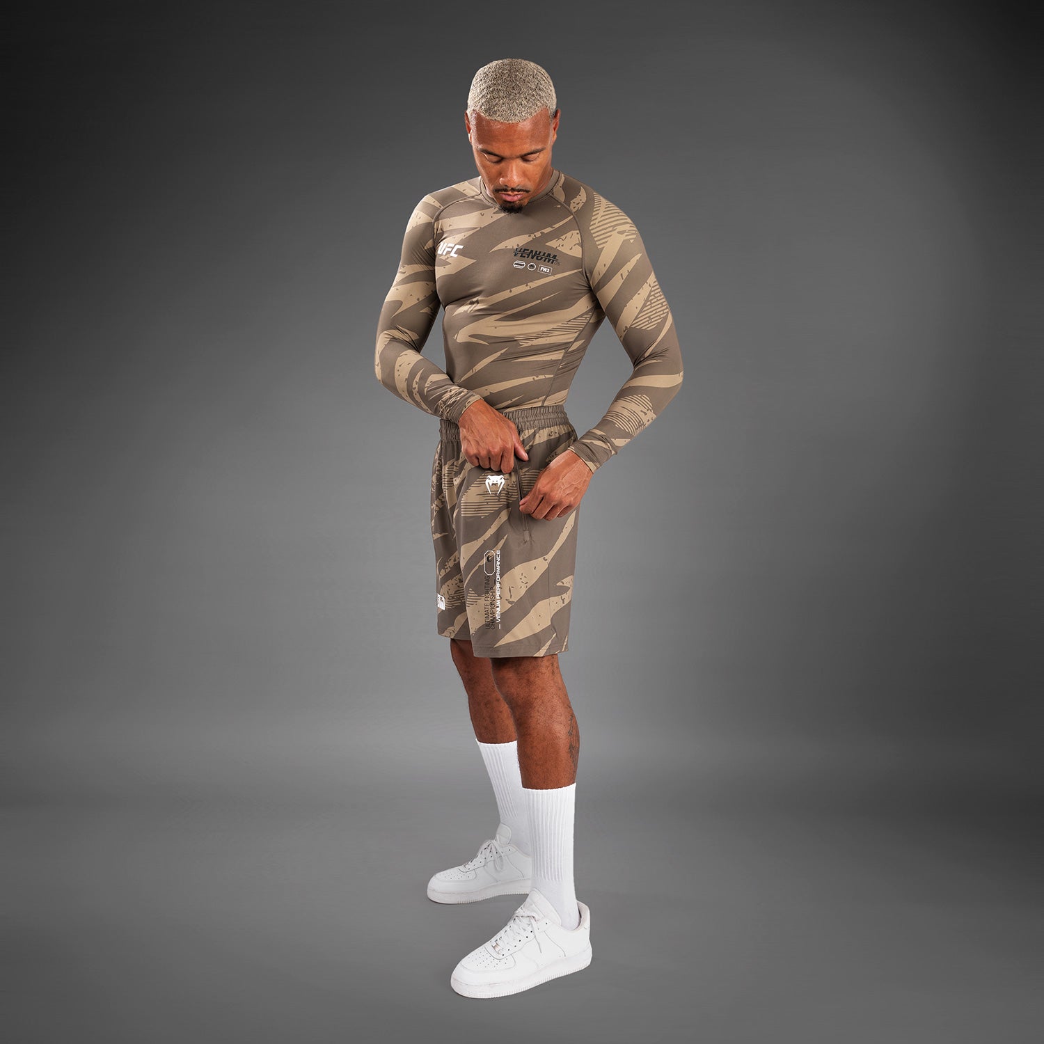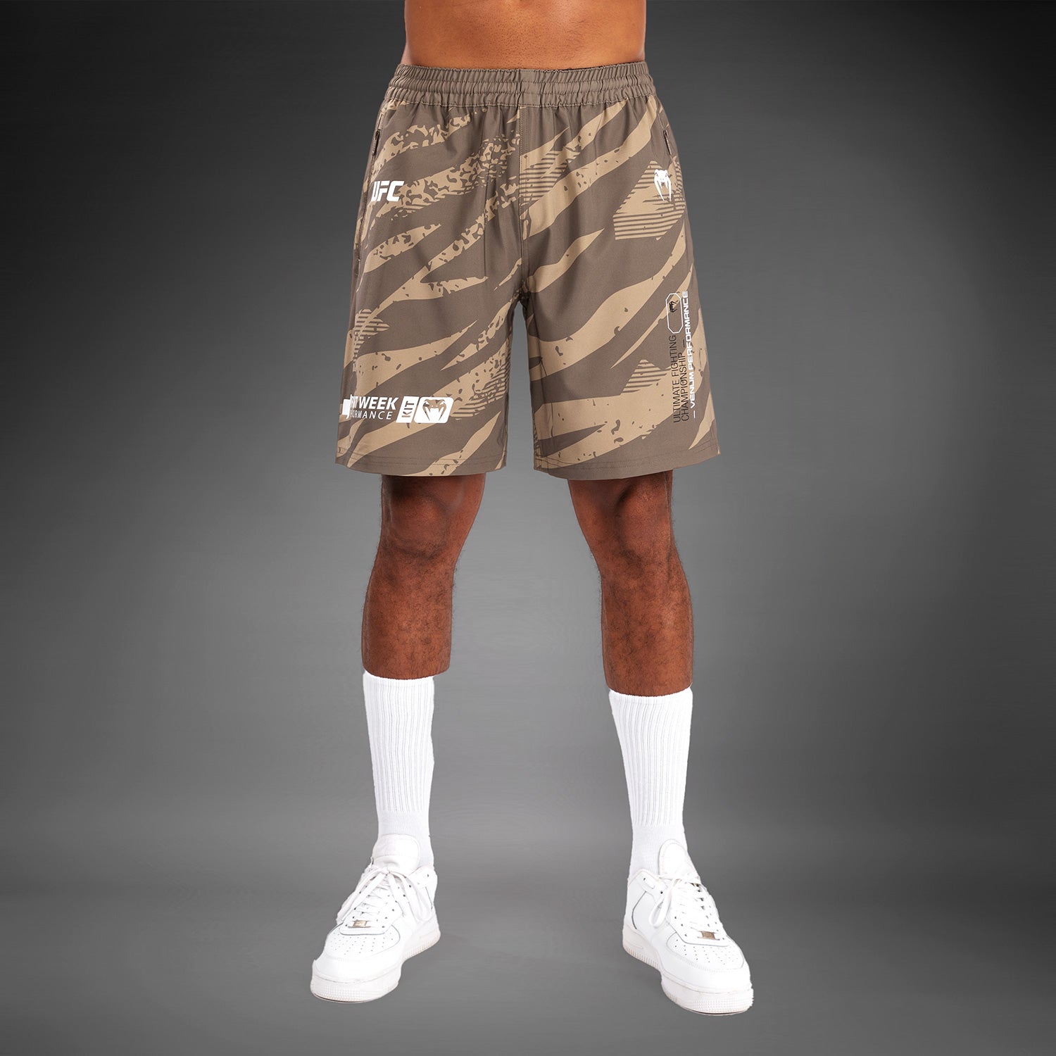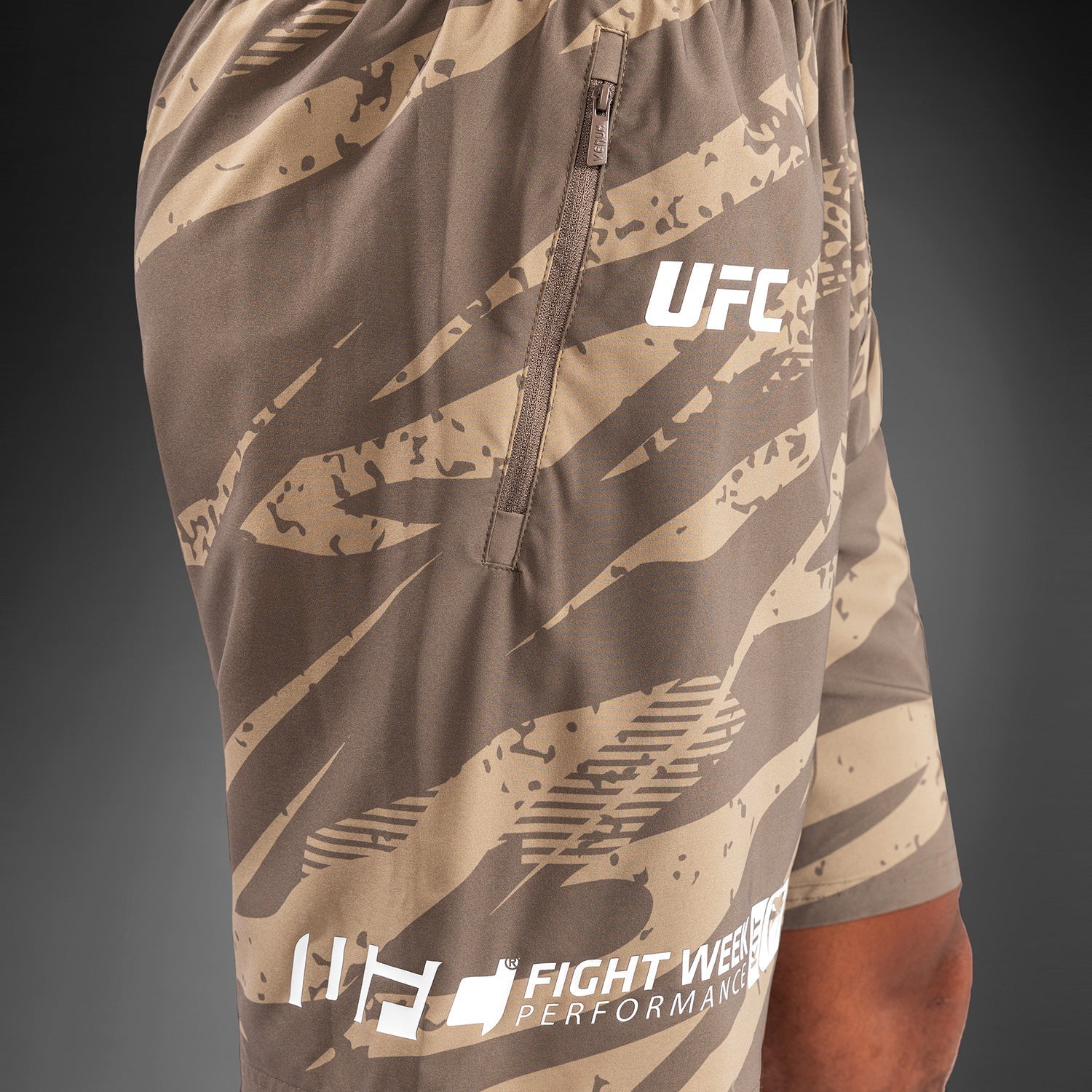 Its bold camouflage print, with white Venum and UFC logos, is inspired by athletes who step into the Octagon, ready to strike and counter strike.