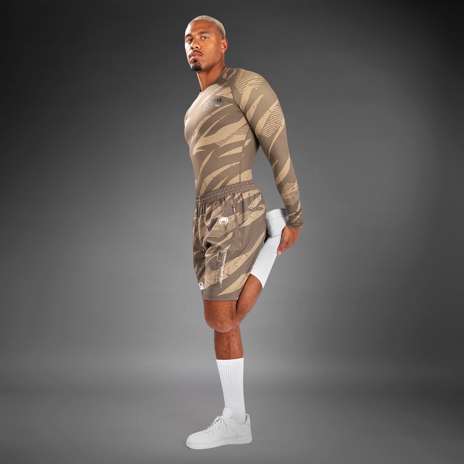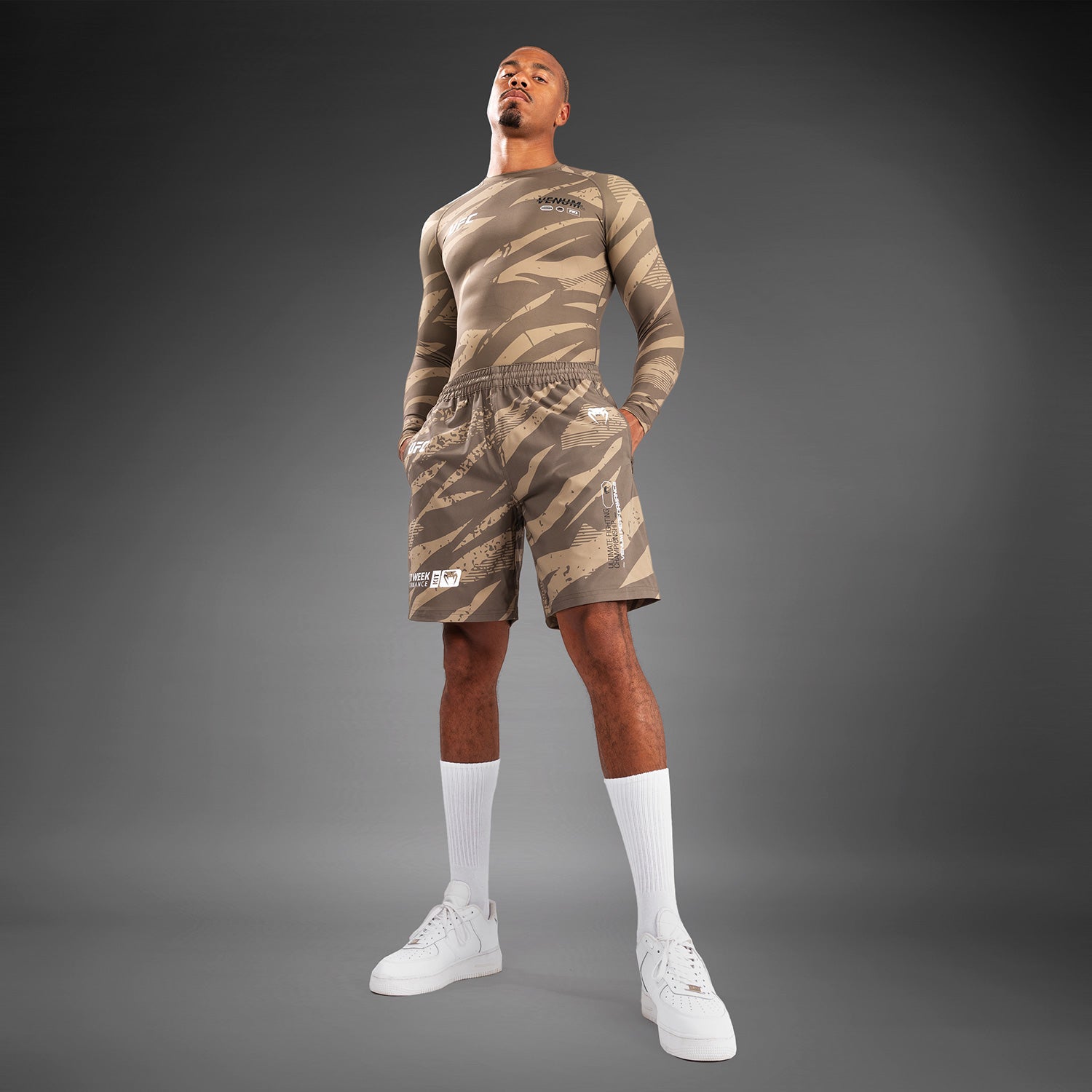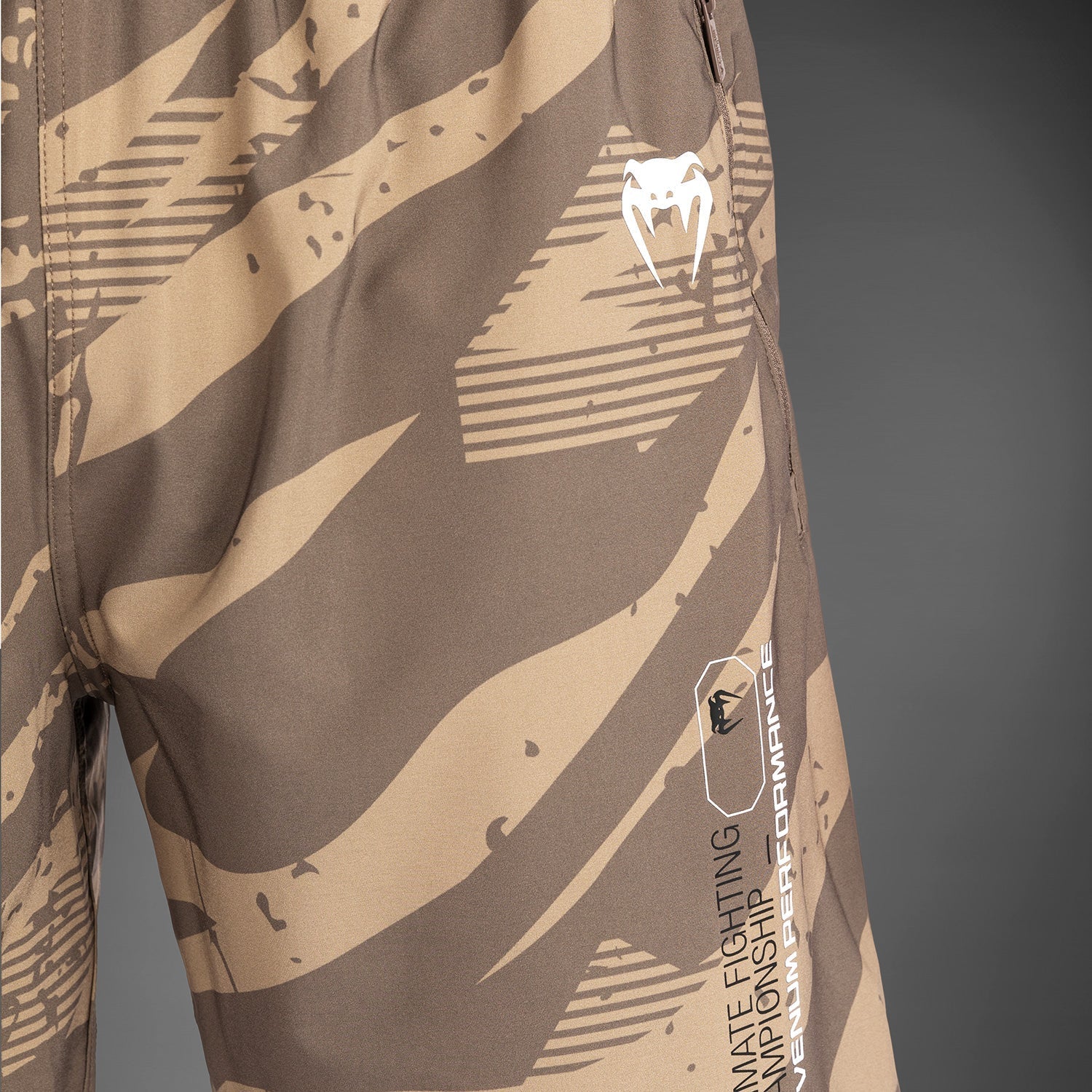 Its bold camouflage print, with white Venum and UFC logos, is inspired by athletes who step into the Octagon, ready to strike and counter strike.