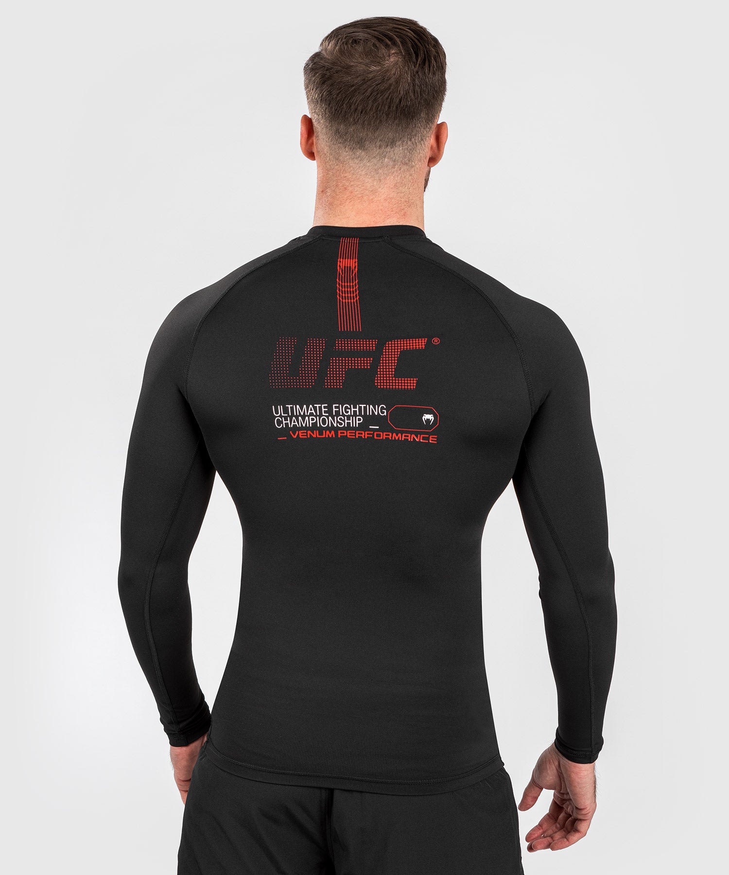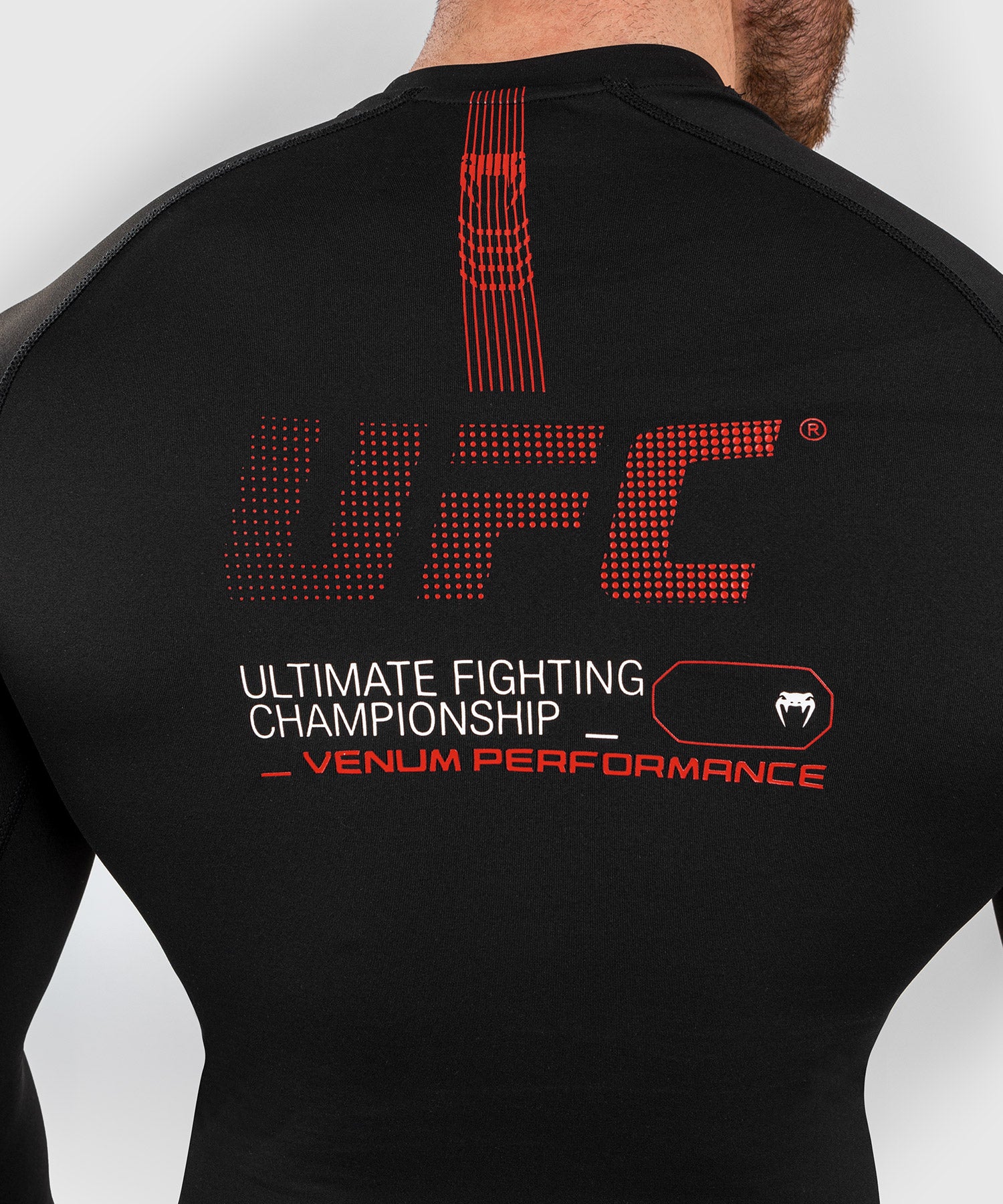 This rashguard matches perfectly with the men’s performance tights and other products in the UFC Adrenaline by Venum Fight Week Men’s collection.
