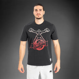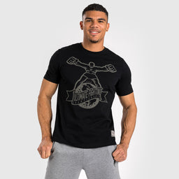 On this black crewneck graphic T-shirt, the iconic Ulti-Man logo in grey takes center stage, while a branded patch sits at the hip. The Venum logo features at the back neck, also in grey.