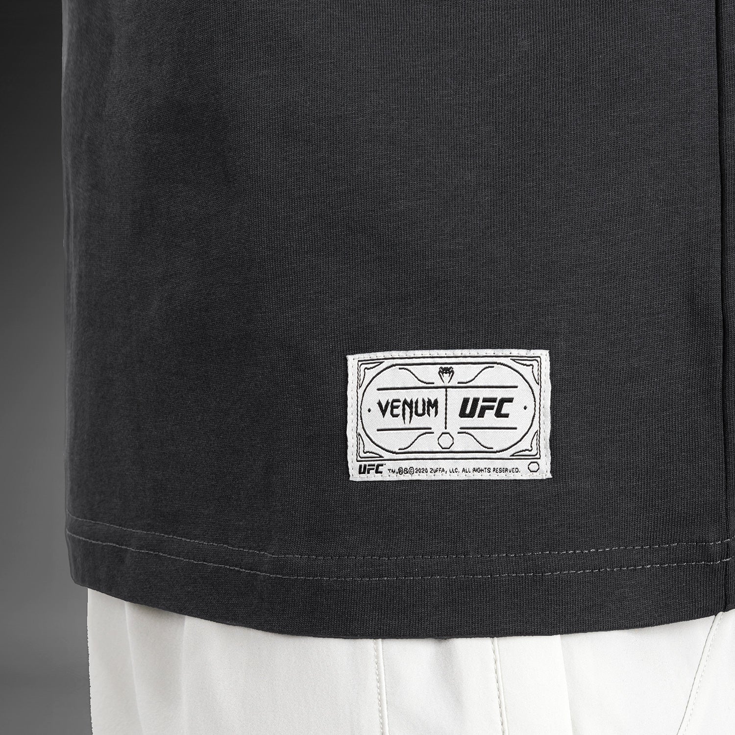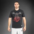 On this black crewneck graphic T-shirt, the iconic Ulti-Man logo in grey takes center stage, while a branded patch sits at the hip. The Venum logo features at the back neck, also in grey.
