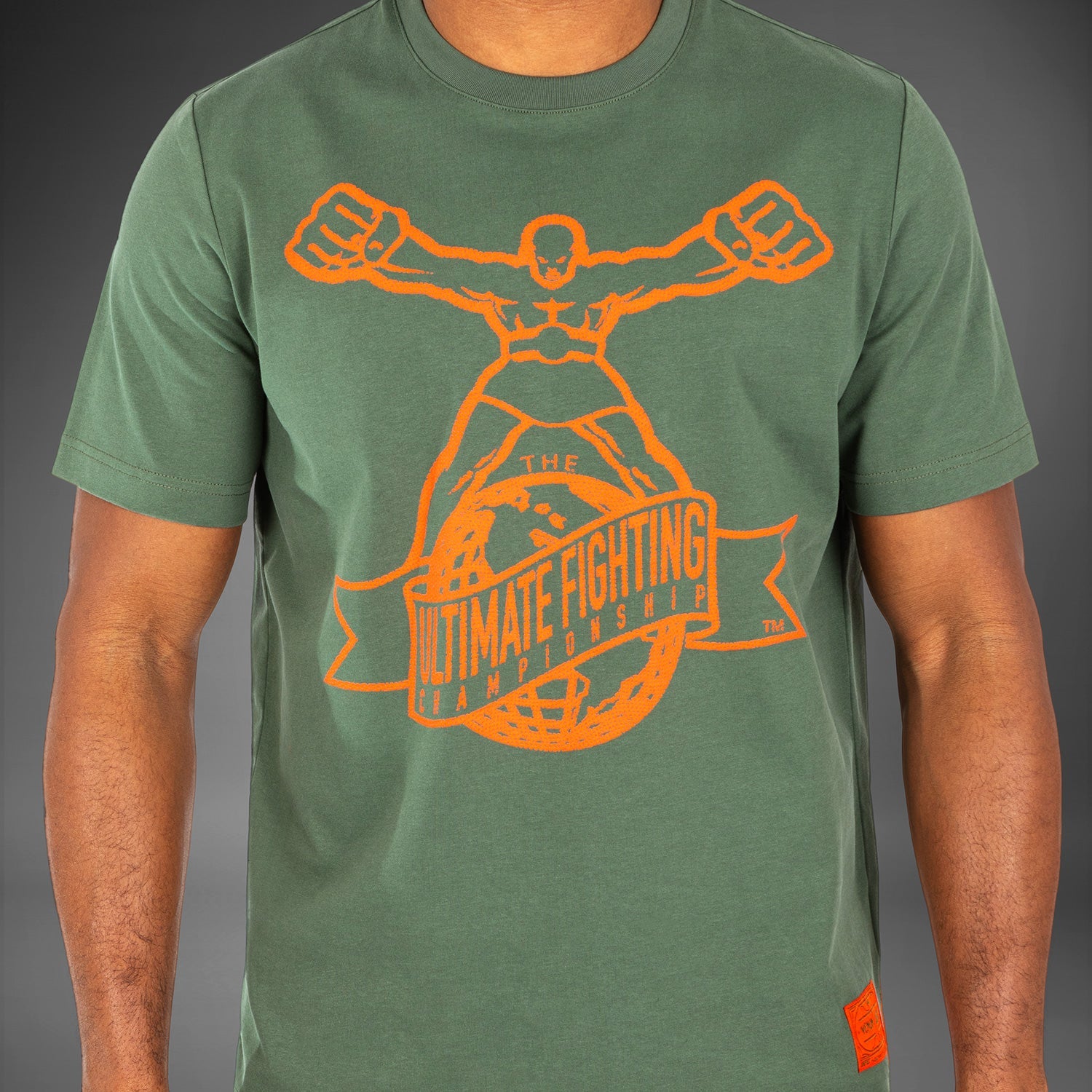On this black crewneck graphic T-shirt, the iconic Ulti-Man logo in grey takes center stage, while a branded patch sits at the hip. The Venum logo features at the back neck, also in grey.