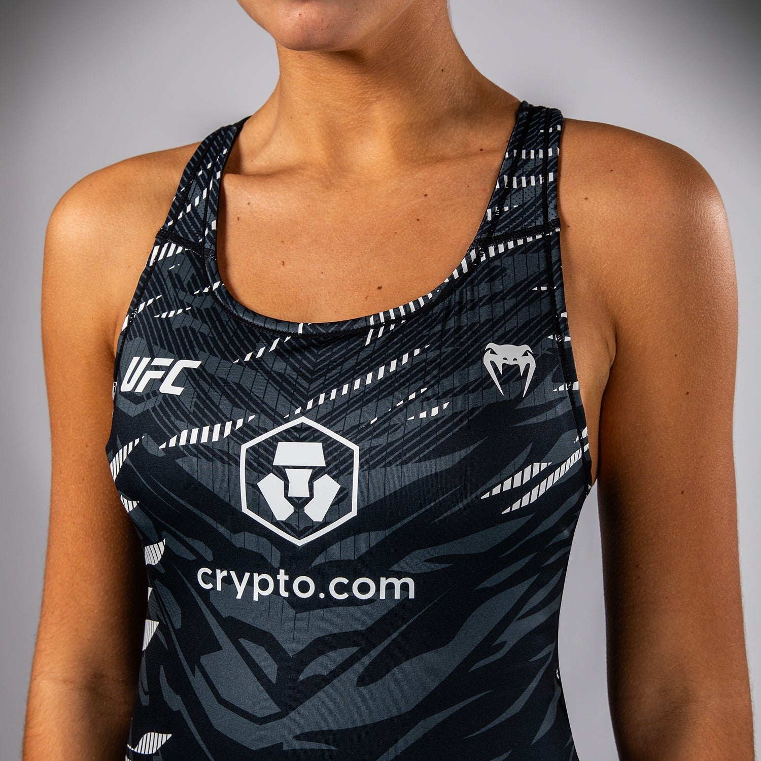 The UFC Fusion by Venum Authentic Fight Night Women’s Fitted Tank with Shelf Bra is suitable for cardio, lifting and sparring. The elasticated band is supportive, while the racer-back cut ensures freedom of movement.