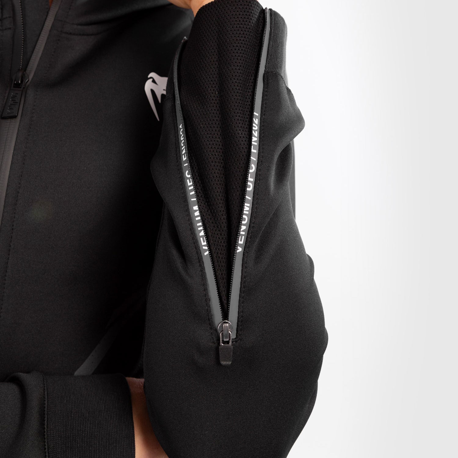 The fabric is light and breathable while remaining slightly stretchy, offering maximum comfort and freedom of movement. The sleeves are adjustable to enable athletes to put on and take off the hoodie while wearing MMA gloves.