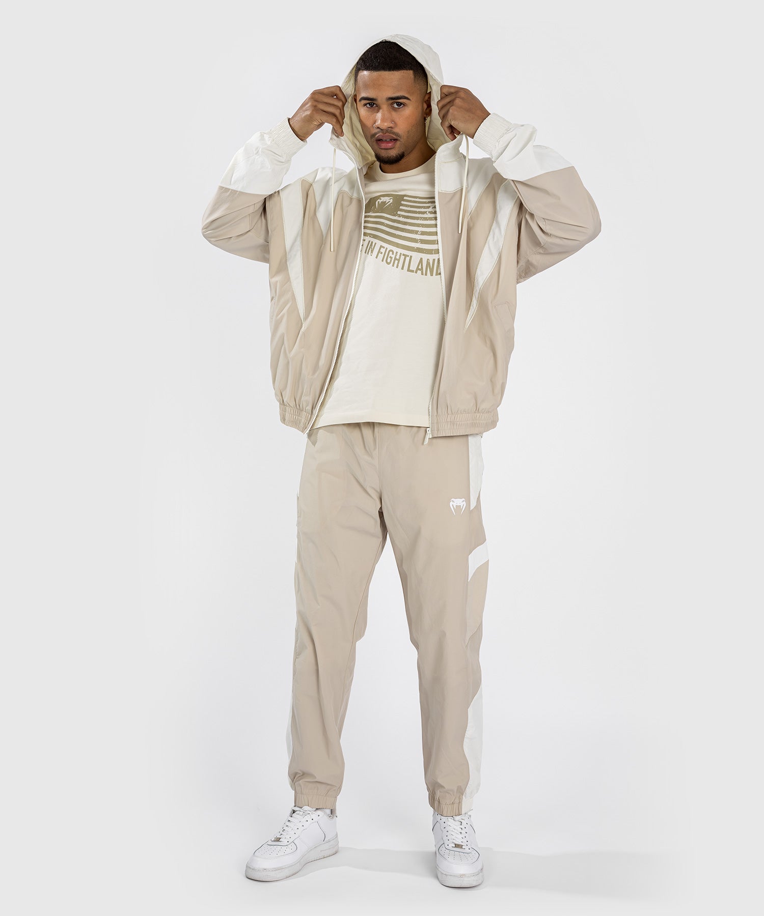 The Venum Attack 90 Tracksuit Jacket in Beige is a full zip jacket with elasticated wrists, open pockets and a drawstring hood. Lightweight and easy to layer over your favorite Venum T-shirt, this jacket delivers casual sportswear with a touch of Venum.