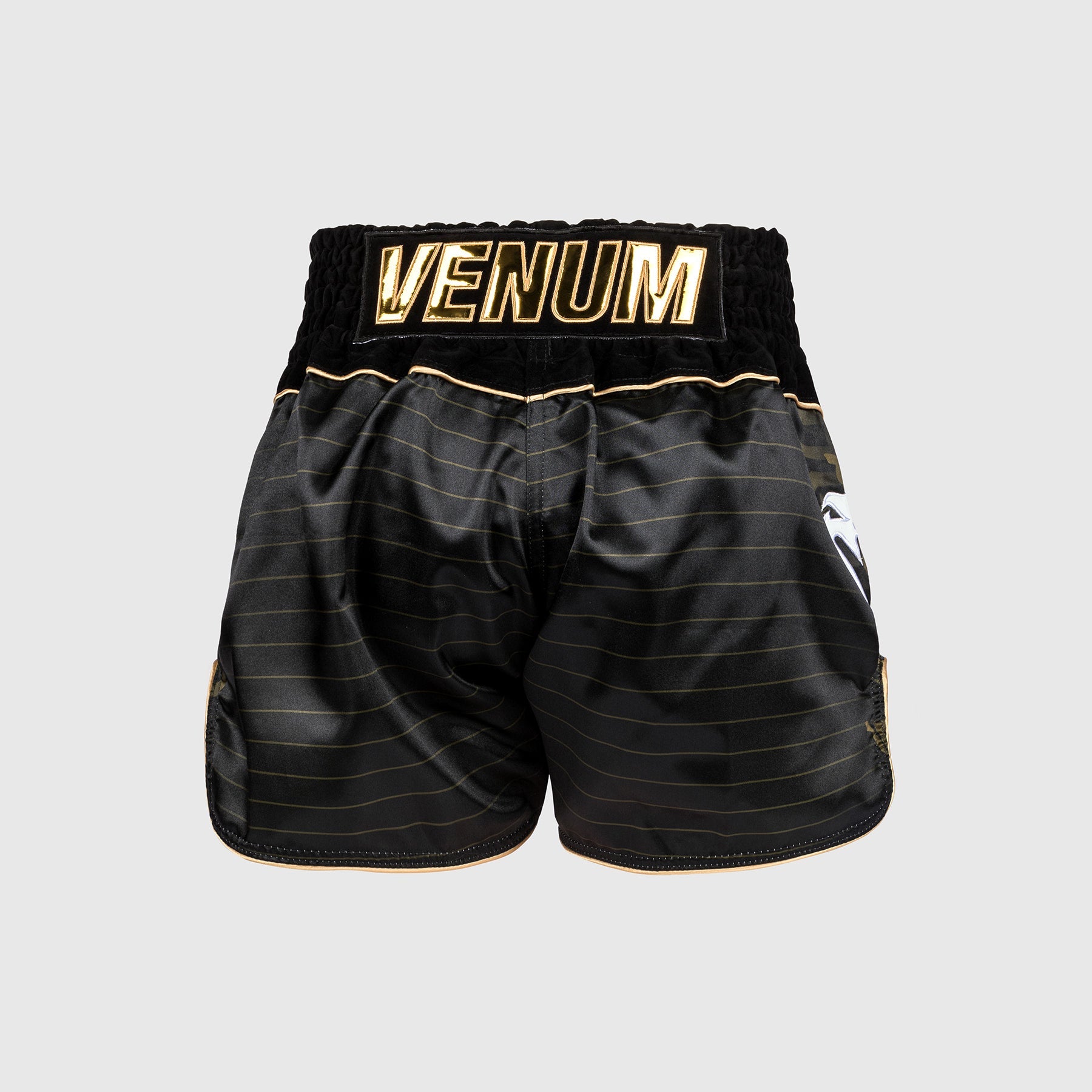 A patch with “Muay Thai” written in Thai script, with a reflective gel effect, sits across the front of the short. Meanwhile, a Venum logo is placed at the leg and supportive waistband.