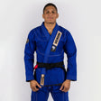 The monogrammed inner lining and a three-tone logo design at the jacket’s back add elevated style. Meanwhile, high-quality reflective patches and contrasting stitching finish off this premium blue Gi.