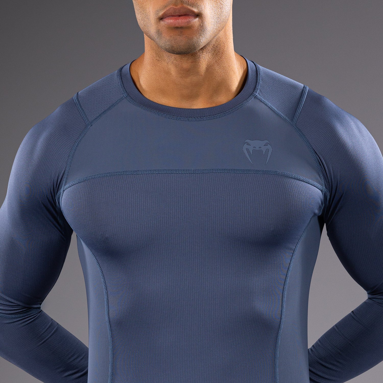 The Venum G-Fit Air Men’s Long Sleeve Rashguard is engineered for comfort and freedom of movement during Jiu-Jitsu, MMA and strength training. Compression fabric with reinforced seams provides a second skin effect to reduce the risk of injury from friction, while also promoting muscle recovery. With its silicone waistband, this rashguard will stay in place so you can focus on your performance.