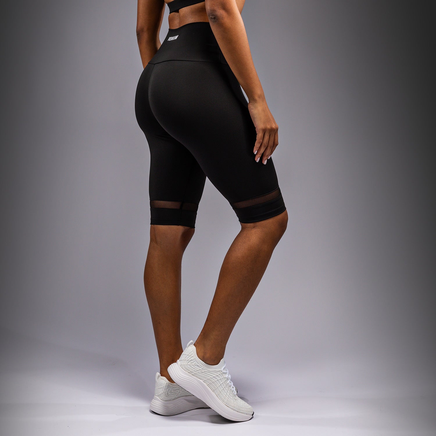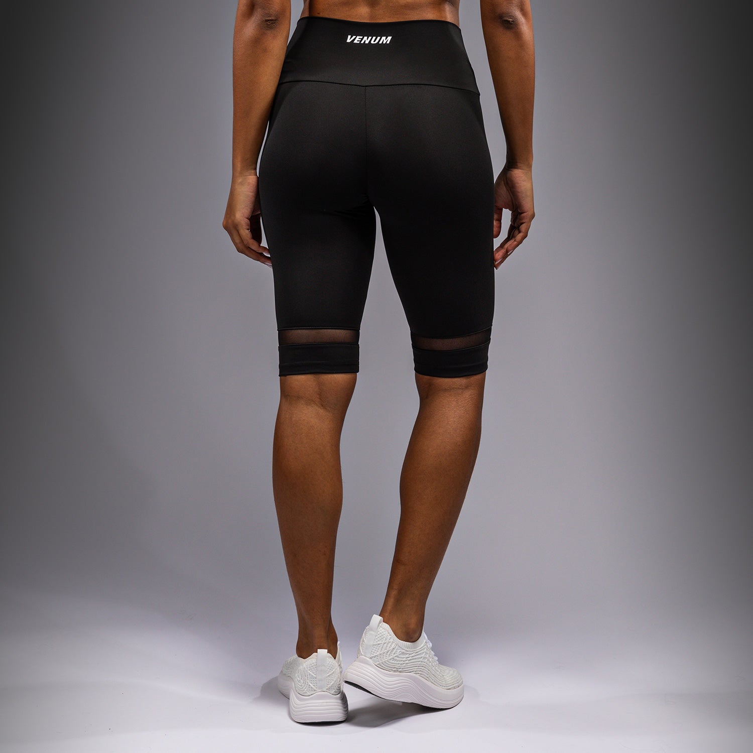 These high-shine long length bike shorts feature breathable mesh paneling above the hem that forms a subtle halo-like effect. Venum branding sits at the hip and back of the waist in white.