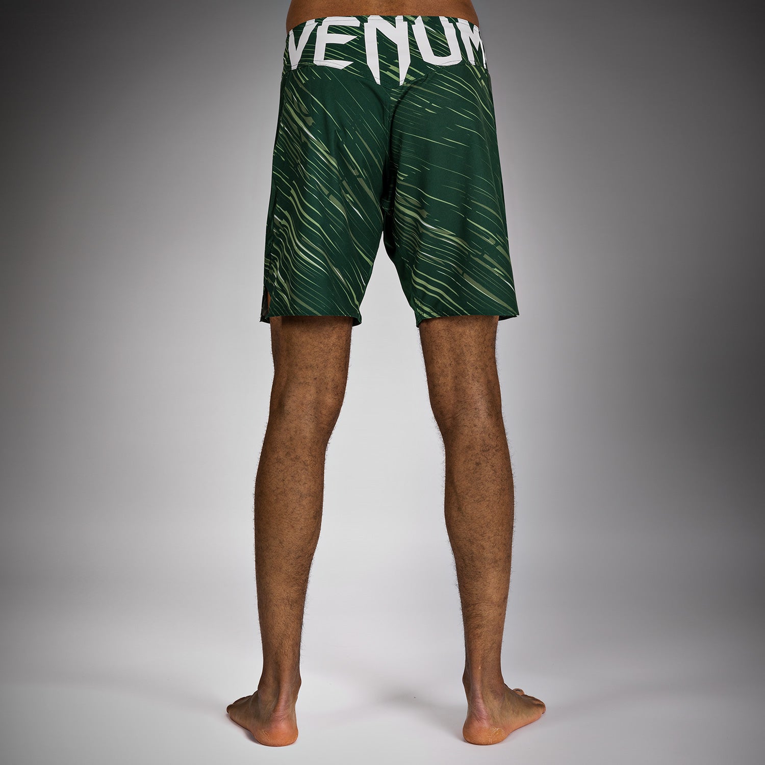 The Venum Rapid Light Fight Shorts are a long fit short, featuring side slits for greater freedom of movement during standing and ground work. Its fabric is lightweight, durable and flexible, while the hook-and-loop waistband delivers a secure fight - the ideal short for combat sports. The dynamic sublimated graphic of this Forest Green colorway is finished with the bold white Venum logos at the waist. This men’s fight short pairs perfectly with the rashguard and other products from the same collection.