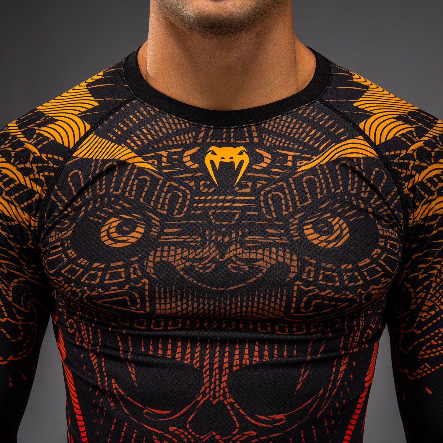 The Venum’s Quetzal Fury Men's Long Sleeve Rashguard serves as a second skin, offering protection from scrapes and burns during grappling. This top is designed for intensive performance. Its compression technology may help encourage muscular recovery. Lightweight and flexible, this rashguard allows you to move freely during groundwork and striking. Reinforced seems stand up to even the most intensive training in BJJ, MMA or the weightroom. Pairs seamlessly with other pieces from the Quetzal Fury range for a unified performance look.