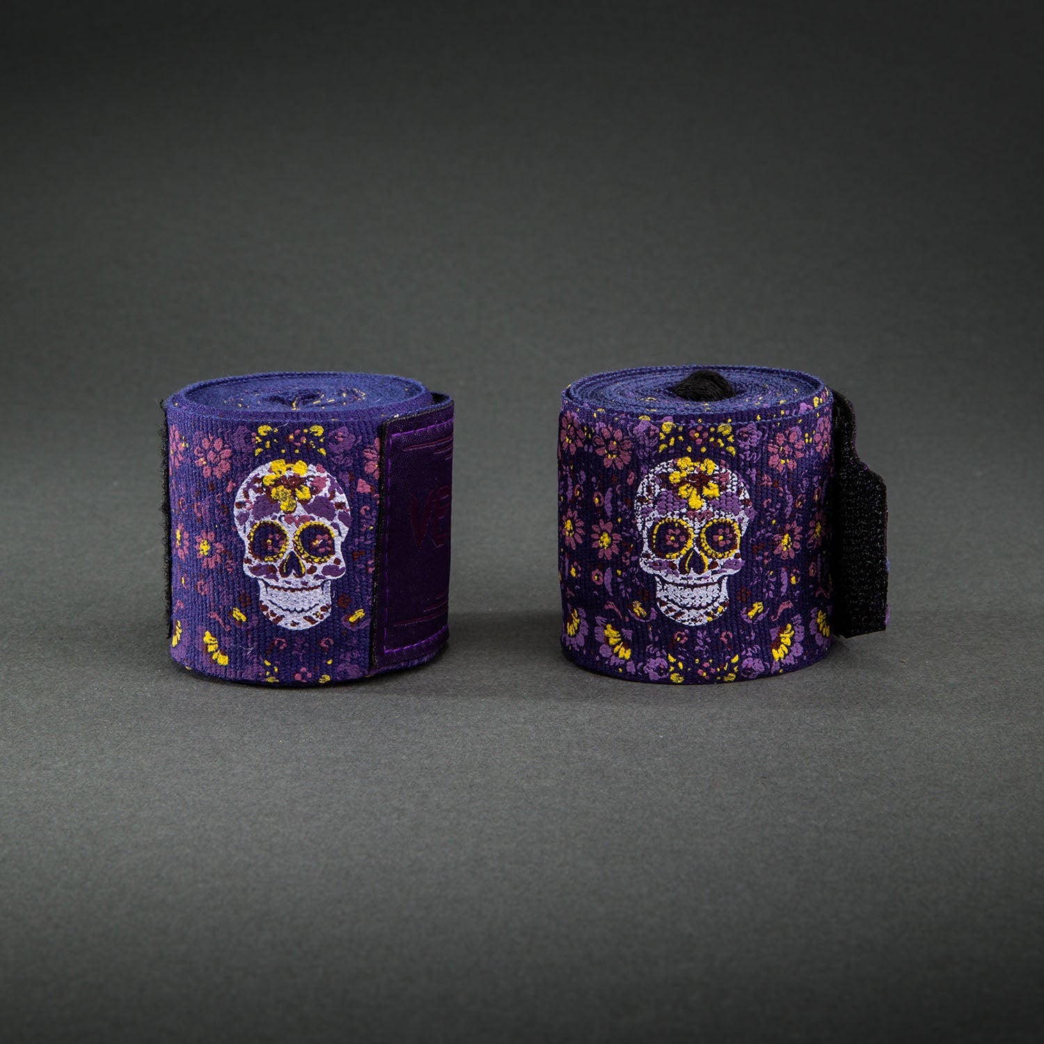 Venum Santa Muerte Handwraps are fun holiday themed boxing hand wraps designed for boxing, kickboxing, Muay Thai and MMA training. The cotton-elastane blend and secure hook-and-loop closure provides support and helps stabilize hands and wrists inside boxing gloves, allowing you to train with full intensity while reducing the risk of injury. Strong, durable, and breathable, these handwraps are suitable for both combat sports training and competition.