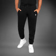 The Silent Power Joggers in Black features open side pockets and a zippered back pocket with a logo motif. The drawstring waistband offers a secure, comfortable fit.