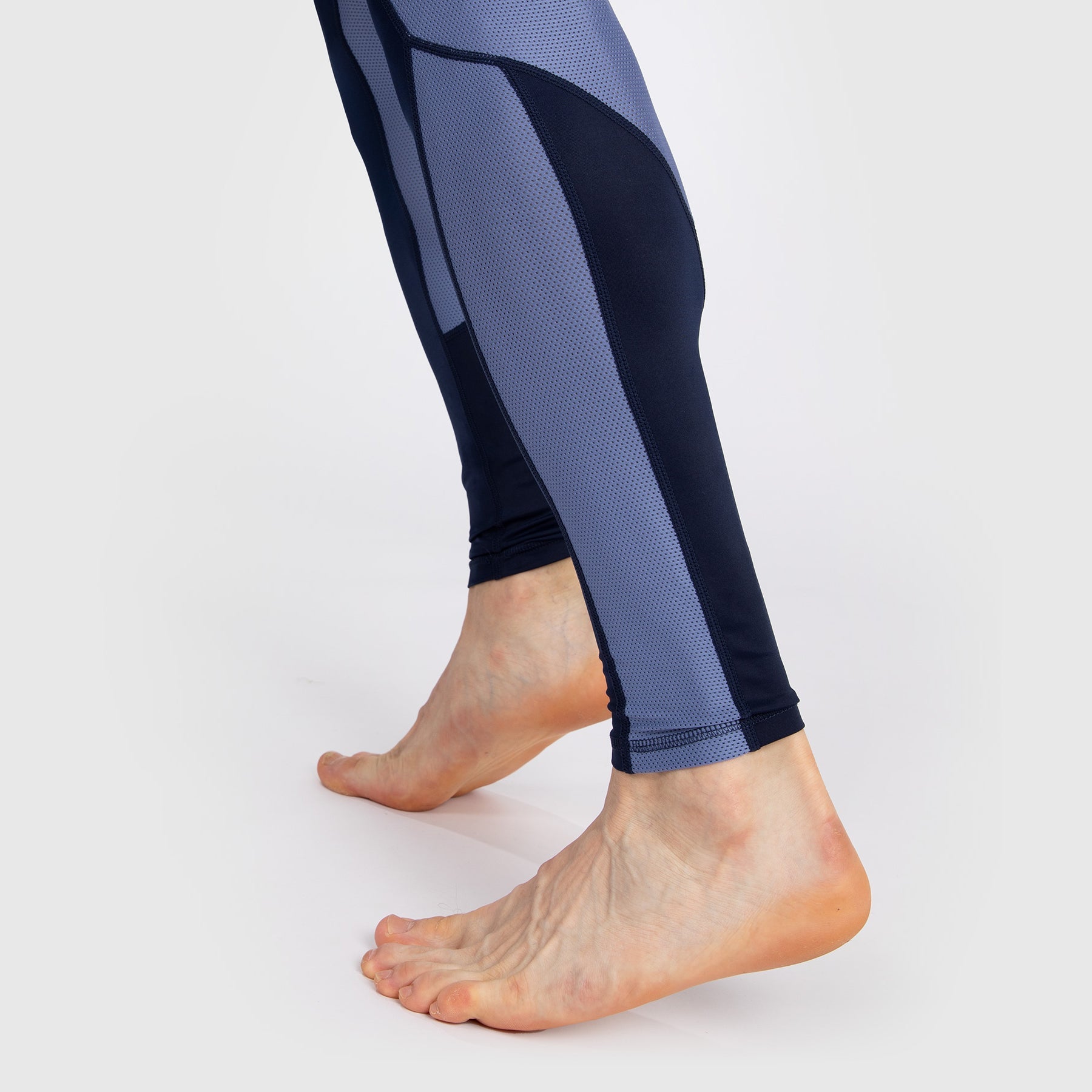 The Venum Tempest Men’s Spats in navy blue/blue serve as a second skin to provide protection against injury and freedom of movement during grappling. Compression technology also helps encourage muscular recovery.