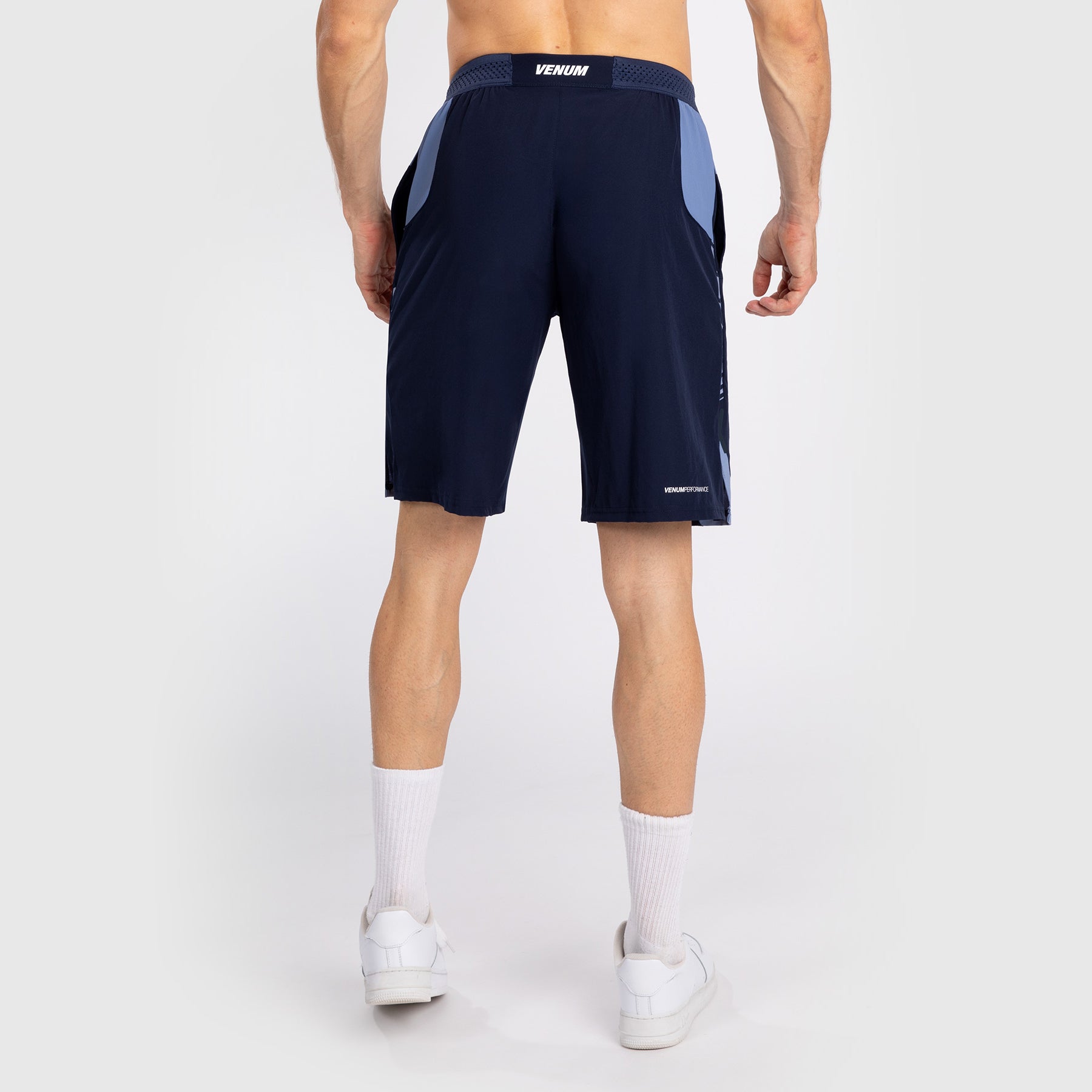 The Venum Tempest Men’s Training Shorts in navy blue/blue are lightweight and flexible, featuring an inner compression short for support and comfort. The elastic waistband offers a secure fit. Ideal for running, cross training and weight training.
